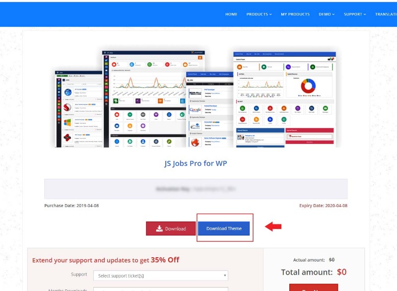 I installed JS Jobs Pro for WP with the theme support but i can't find it anywhere except the one with choosing the colors, But where is the actual theme? and when i click download theme from MY products i get a blank page.
