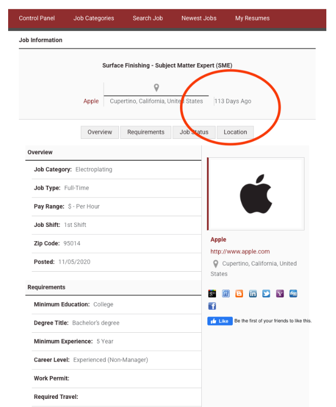 One question: on the inside when the job is listed on the page, it does still appear.